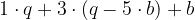 Scrivi sotto forma di espressione algebrica la seguente espressione: il quadruplo della quantità q ridotta di 5 unità.
