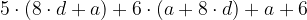 Scrivi l'espressione algebrica corrispondente al prodotto tra 6 aumentato di n e la somma tra numeri n e 8.